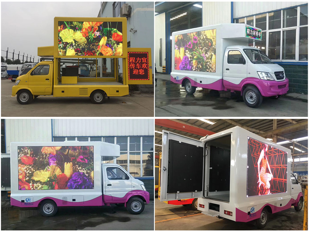 廣告車選裝配置:客戶可根據(jù)需求選裝屏幕清晰度(P10彩屏、P8彩屏、P6彩屏、P5彩屏、P4彩屏)、單面彩屏、雙面彩屏、雙面